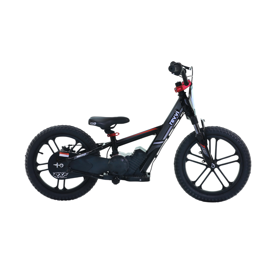 A super light electric-powered motor bike that has been specifically designed for kids, Weighing in at only 11kg’s. Â The bike can be used as a conventional balance bike when learning to balance with its specially designed free wheel system. Â Then watch the rider improve and progress onto the slow speed setting (13kmh) balancing on their own using the foot pegs. Â Perfecting their throttle control at the same time using the bikes twist throttle. Once they are confident using the slow speed setting they can then progress to the medium speed (16kmh) and fast speed setting (19kmh). Â Features hybrid rubber air filled tyres suitable for various ground types & a chain-driven motor that delivers reliable performance. Â The 16″ Plus features the following upgrades over the standard 16″ model – Front suspension, Metal wheels, rear disc brake, handlebar pad, full grip throttle, 3 speed settings, anodized handlebar, anodized seat clamp and a brushless 250w motor.Â